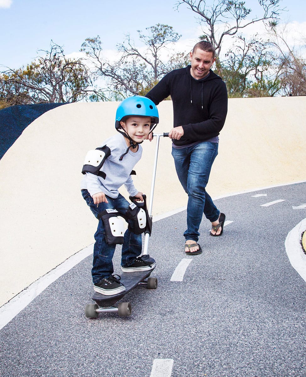Founded in 2016 by Aussie Dad, Daniel De Gaye, the Ookkie Skateboard was created with one goal in mind - to get children learning to skateboard earlier. As a skateboarder himself, Daniel wanted to teach his son how to ride a board safely whilst also developing fundamental balance, stability and confidence.
